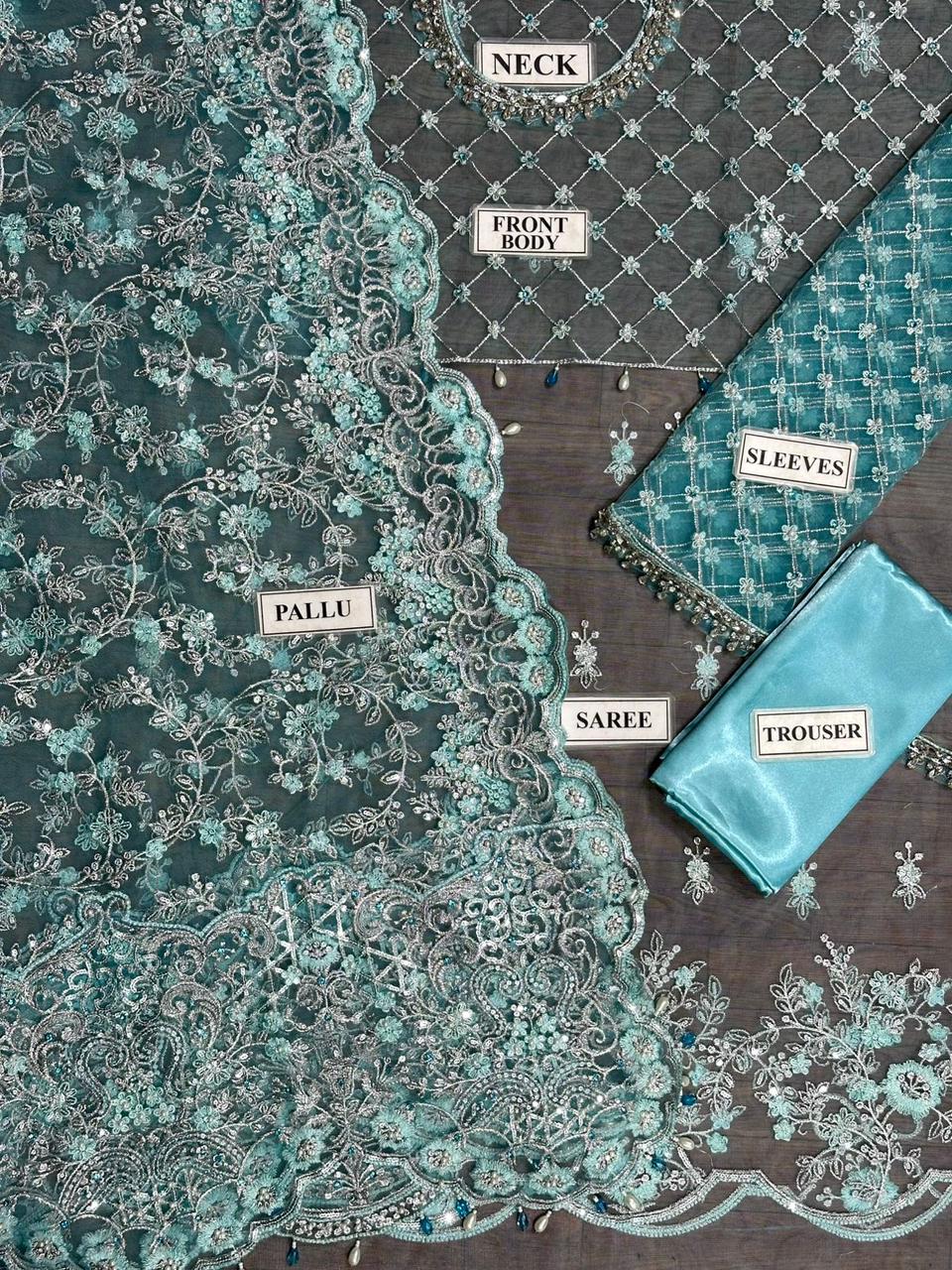 Embroidered Pure Chiffon Center Panel with Hand Embellishment 3D Flowers